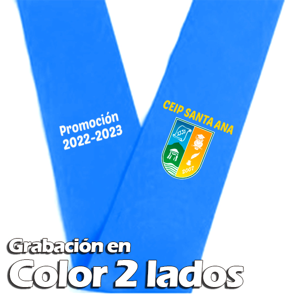 Banda de graduación de alta calidad, de 280 gr. y 100% poliéster, con grabación en color 2 lados.